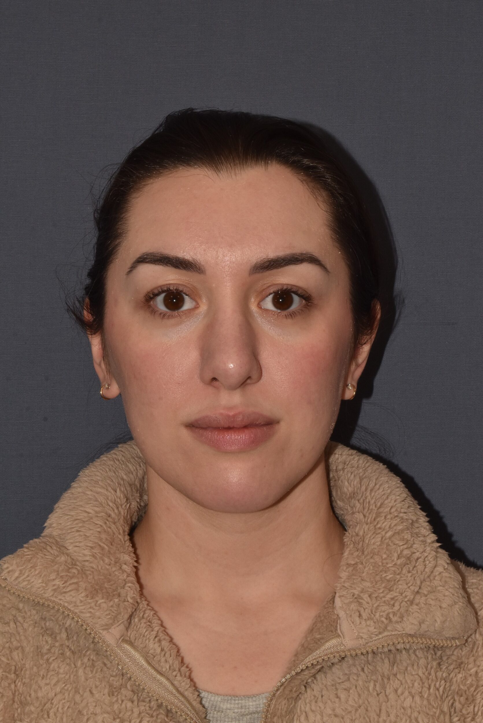 The patient is a young woman who had difficulty breathing due to her deviated septum and narrow dorsum. She had septorhinoplasty to improve her aesthetics as well as breathing.